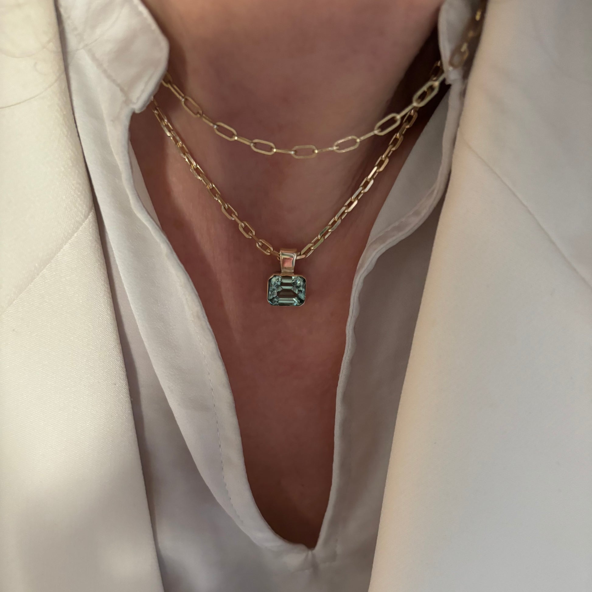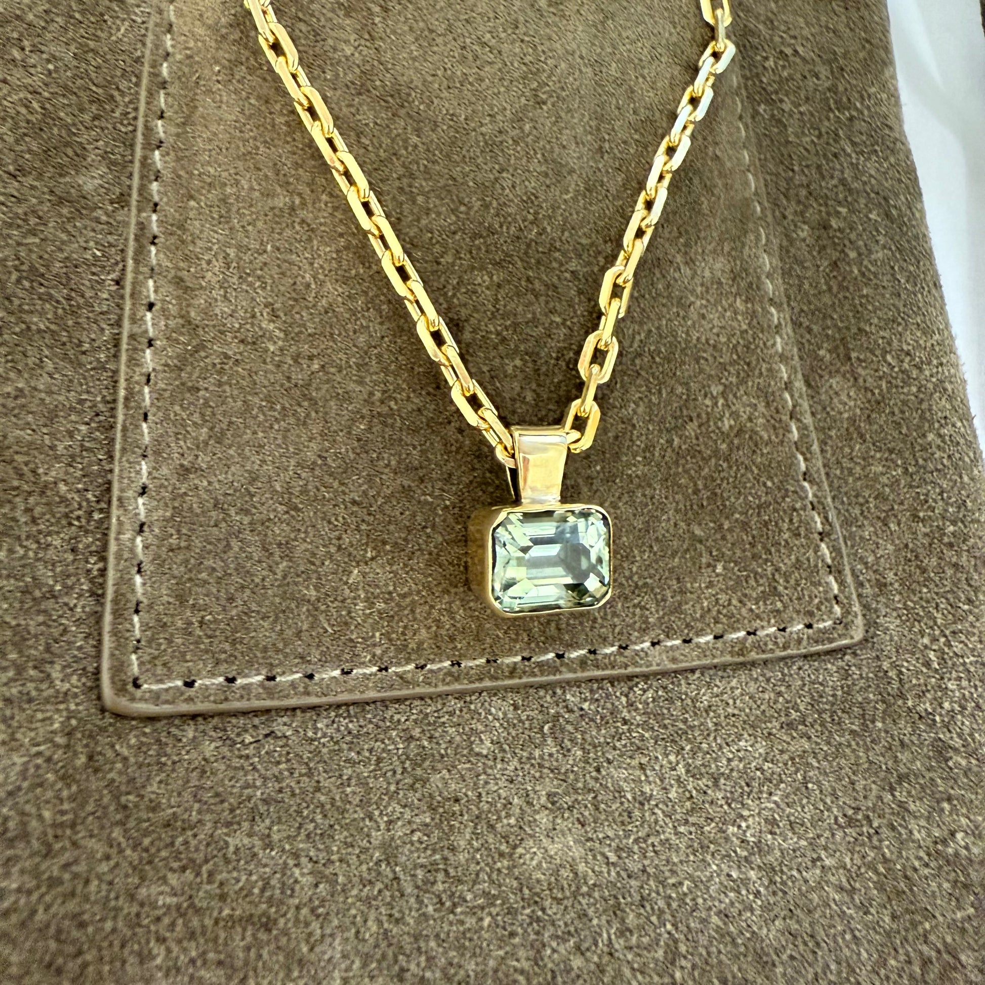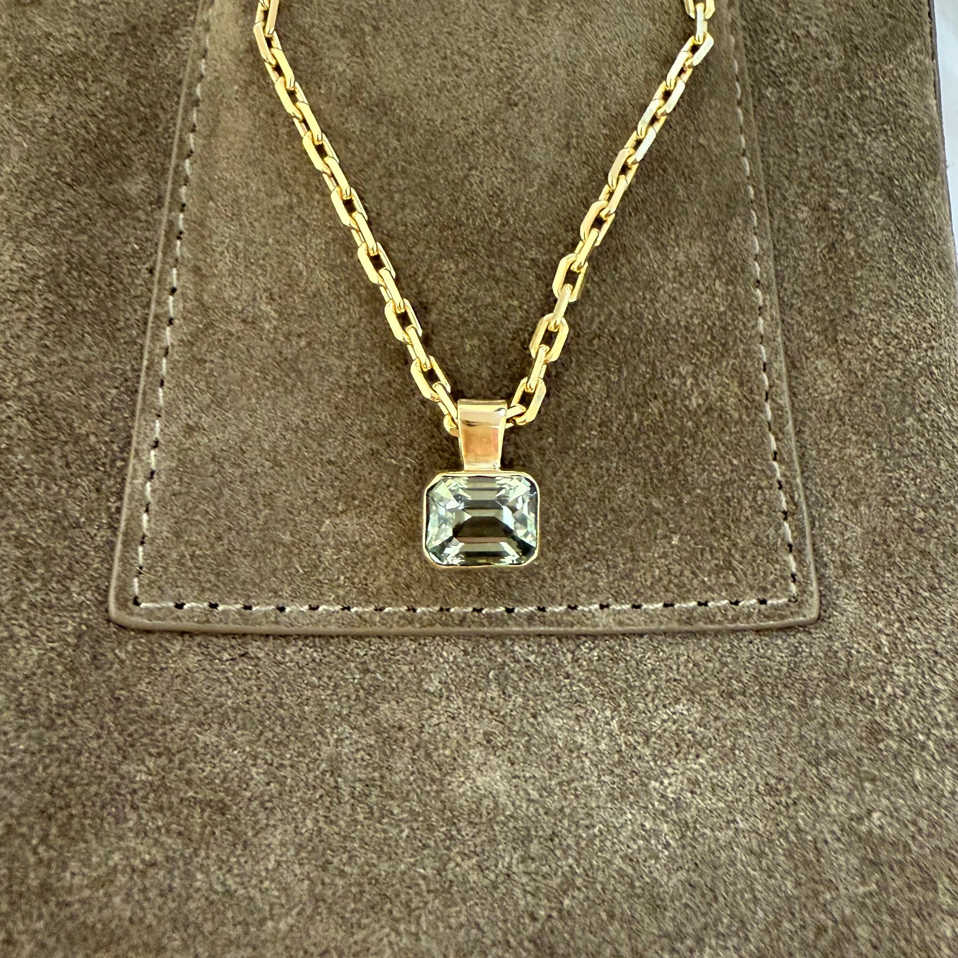 Natural Faceted Octogon Green Beryl wrapped in 9ct gold necklace