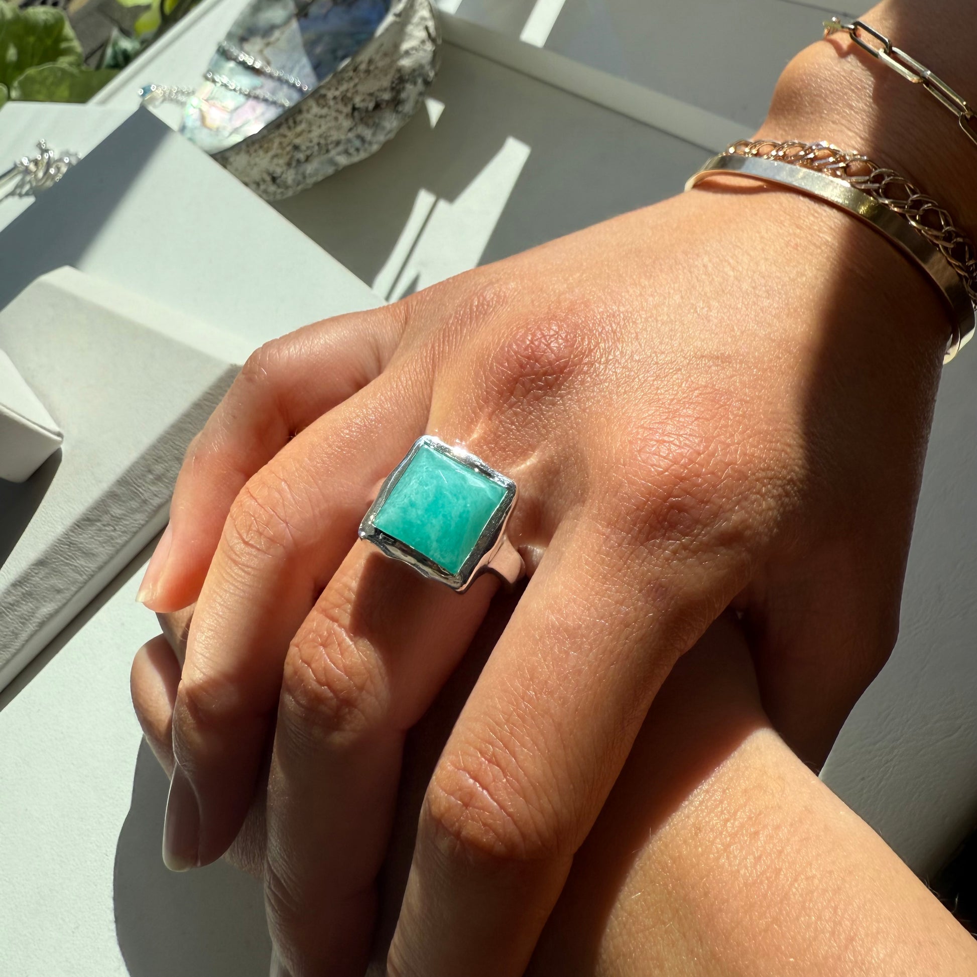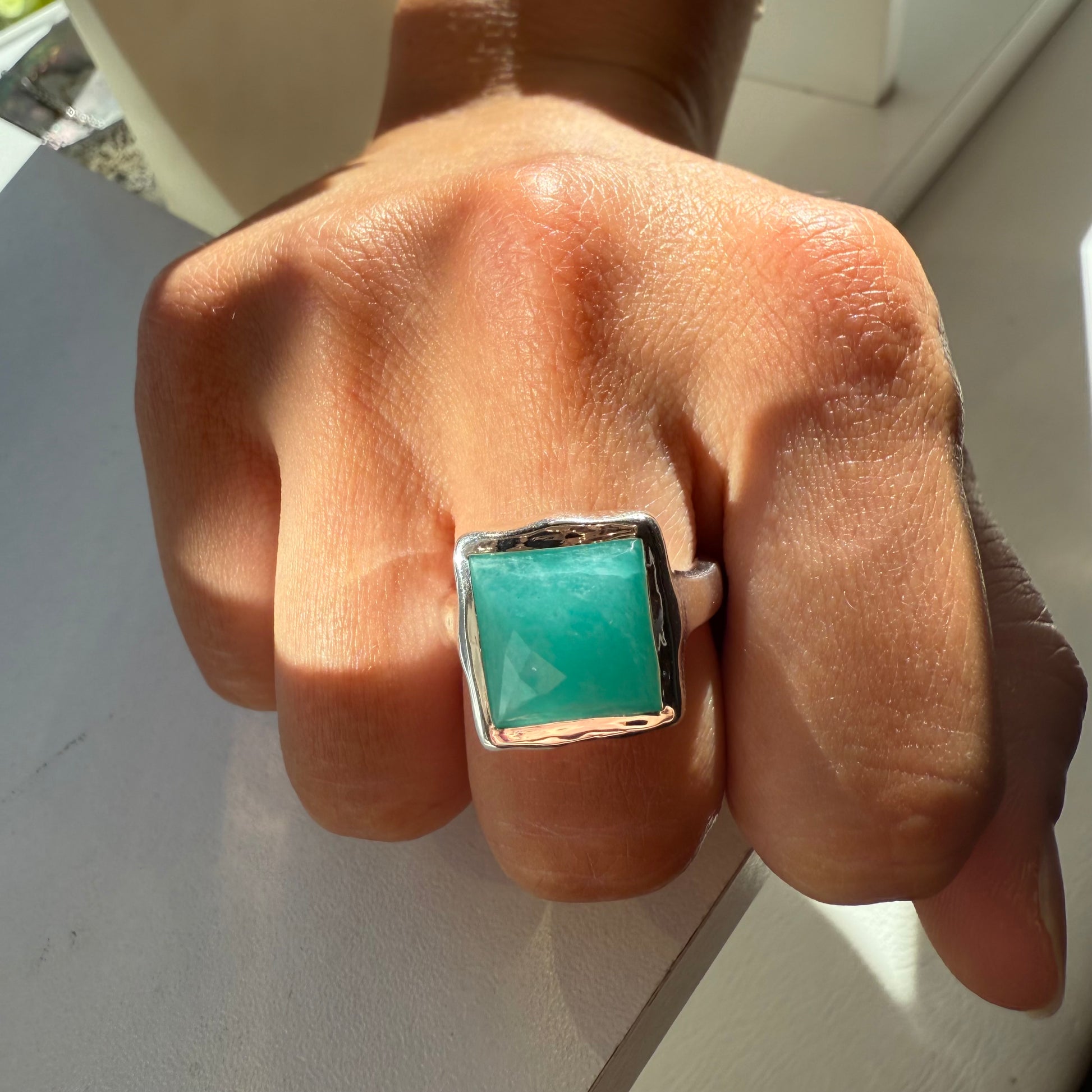 The summer look Amazonite silver ring